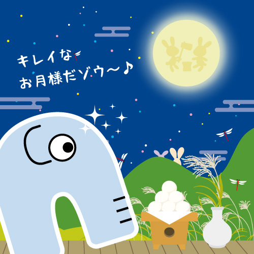 そんな十五夜は9月中旬~10月上旬といわれていて、この時期に出てくる満月を”十五夜”っていうんだゾウ♪